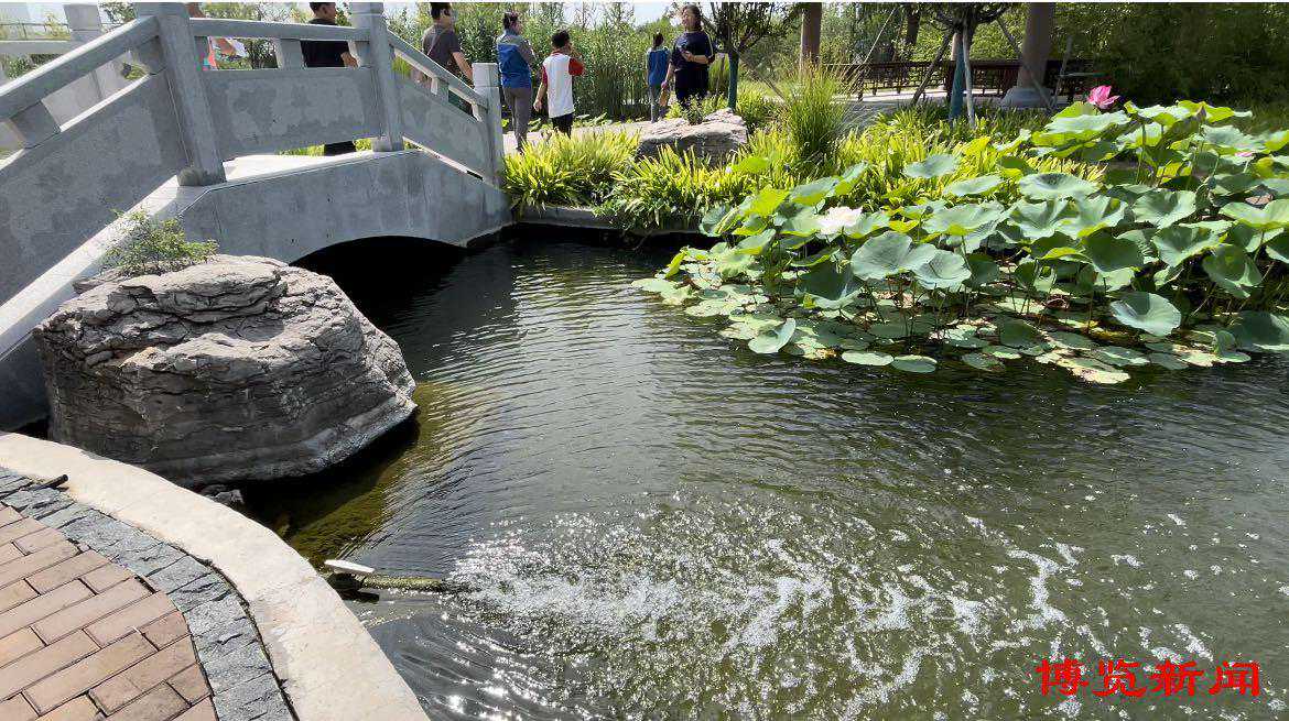 在讲解员的指引下,记者看到,厂区水系花园里流水潺潺,清澈见底;碧水中,鱼儿欢快地游动。放眼四处,各类植被错落有致,葱茏繁茂,池中荷花,开得正艳,与蓝天白云相映成趣,成为夏日里一处美丽的风景。