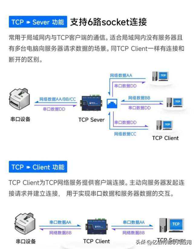 可提供TCP与UDP四种通信机制,可快速配置实现数据透传。