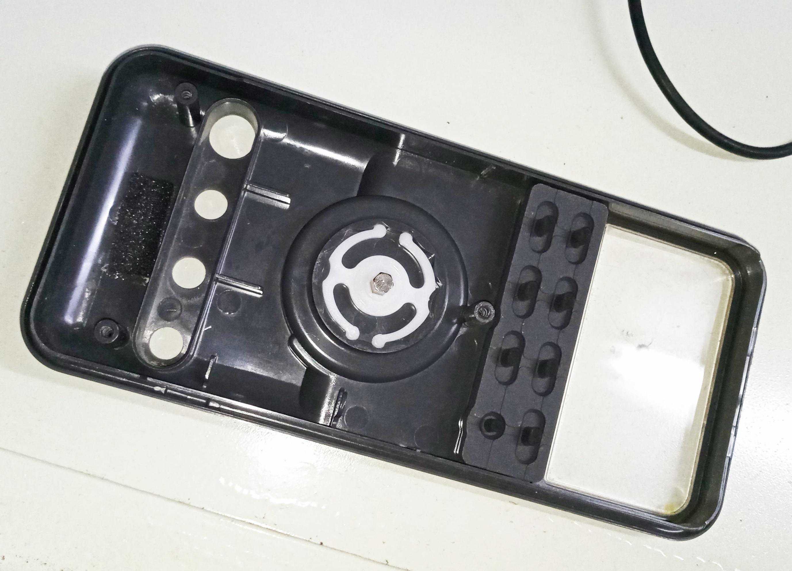 前壳部分,嵌有一体式的橡胶按键,白色部分是拨盘。