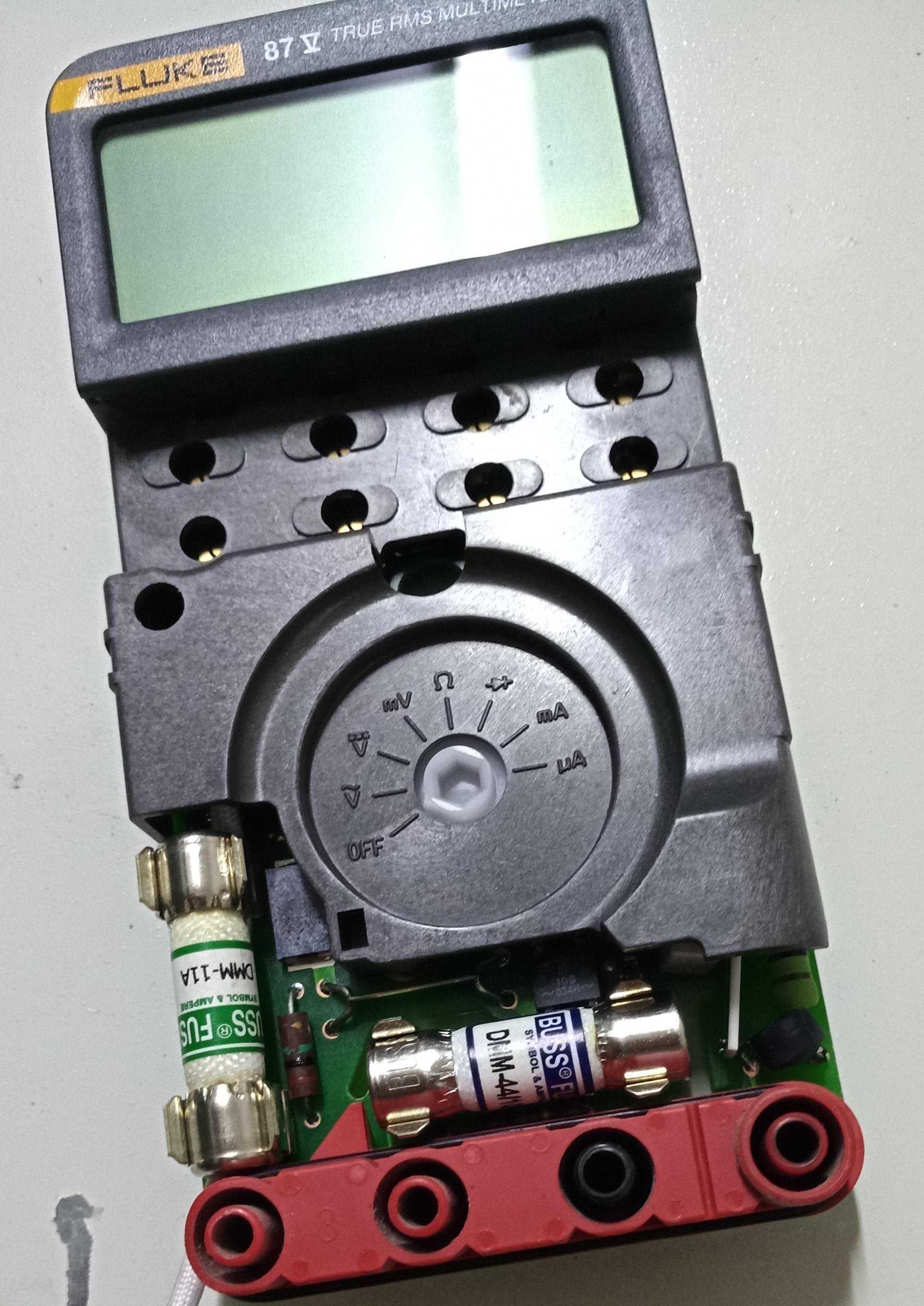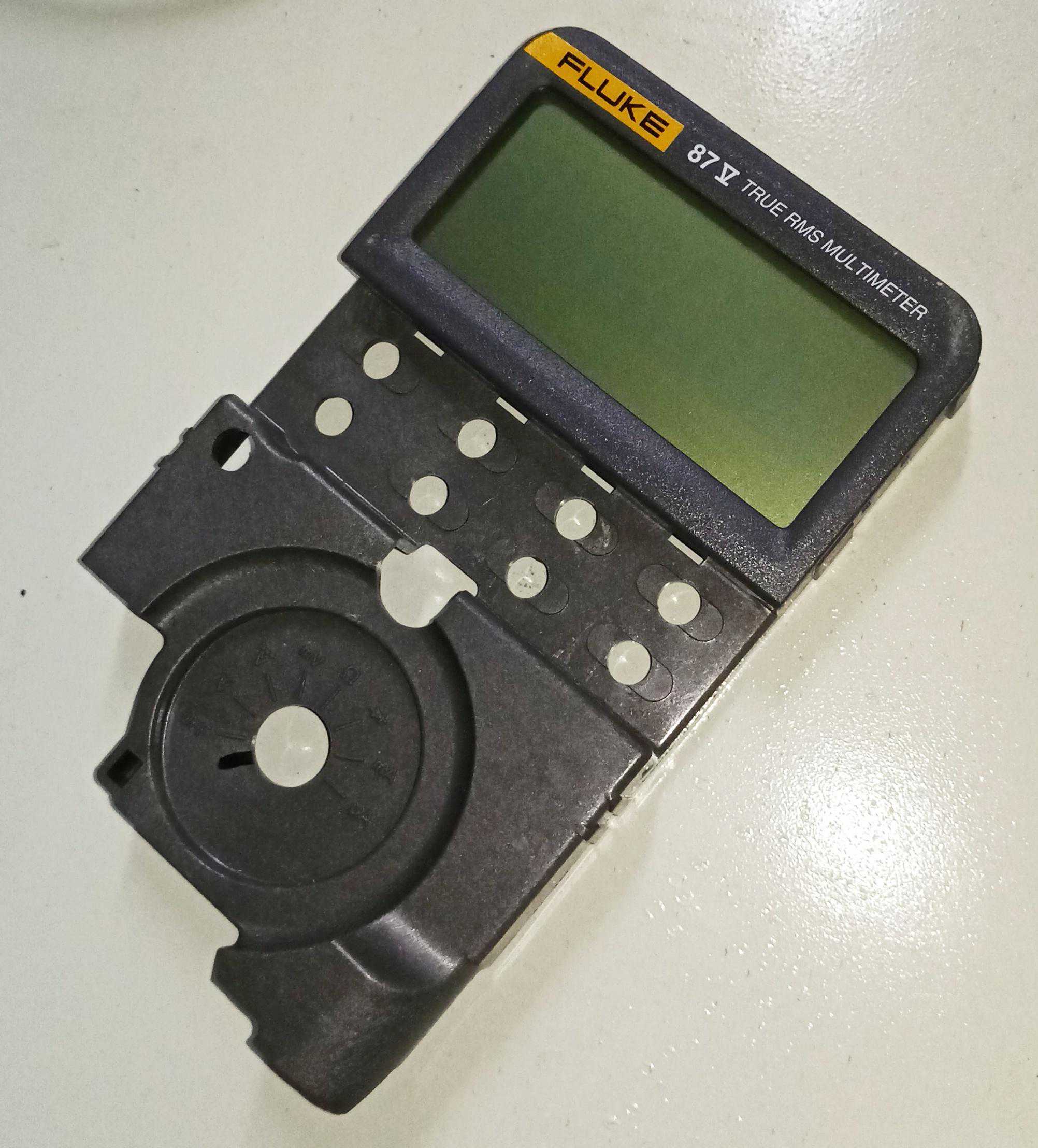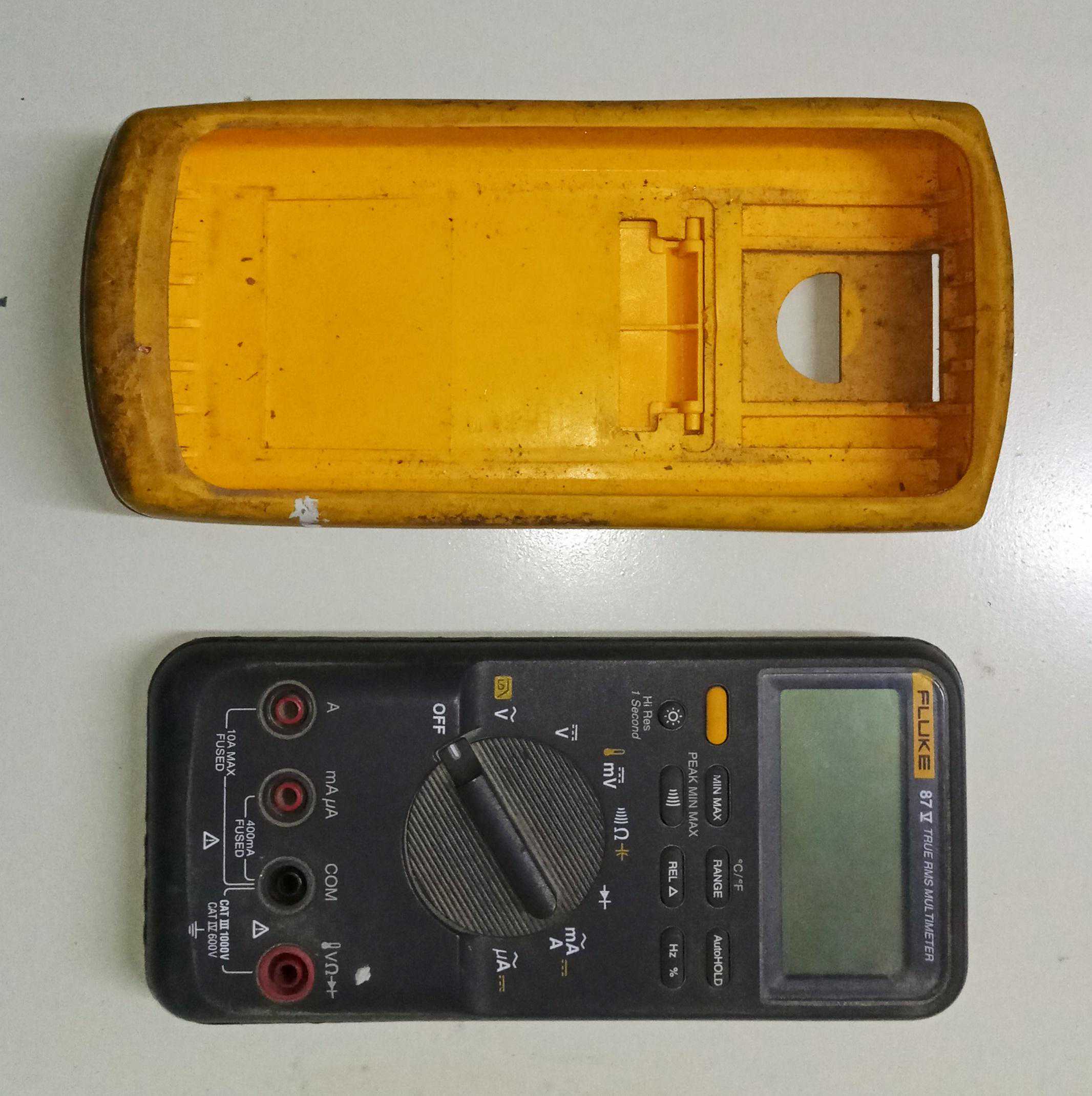到手发现开机正常,电压、电流、电阻各档位也基本准确,心中暗喜,卖家说的接触不良的暗病也没发现。就是面相差了点,表壳上的这些污垢,洗衣粉、酒精、除垢剂各种招式用尽也清除不了,看来只有换个新外壳。