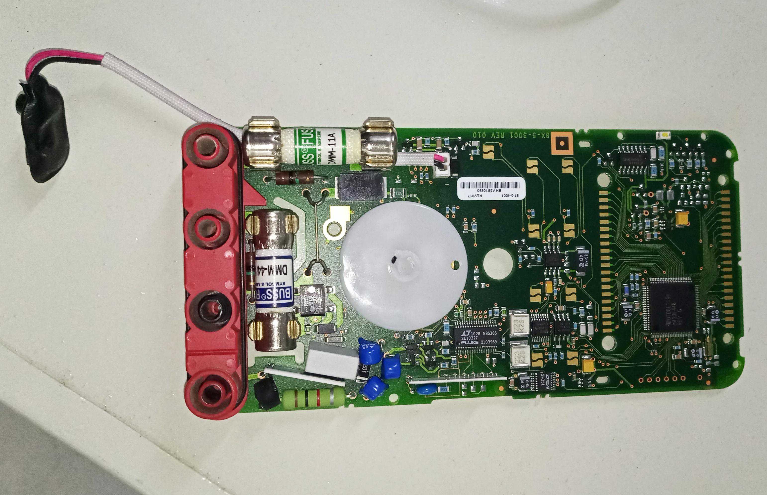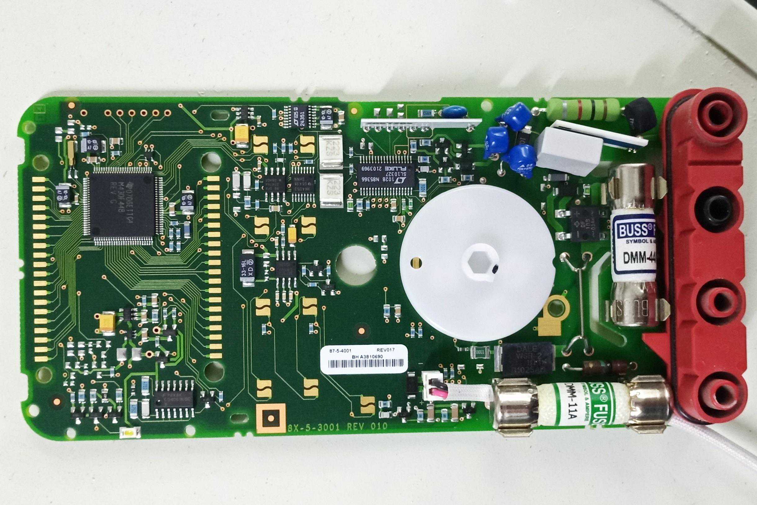 主控芯片:德州仪器的M430F448单片机,在福禄克的中端万用表上均有采用,像F117C、F115C等。