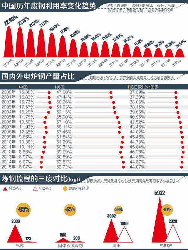 而废钢协会的数据显示,打击地条钢以来,中频炉相继关闭,到今年3、4月份,主流钢铁企业每月废钢铁社会采购量均同比增加50%左右,目前多数主流企业转炉废钢比已达15%以上。