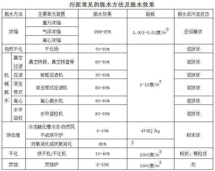 常用的污泥脱水方法主要是污泥浓缩(常作为预处理)、自然干化和机械脱水。