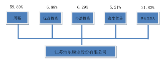 董事长周强占股59.80%,为沛尔膜业控股股东和实际控制人。