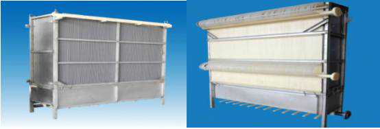 单片膜元件由隔水板、导流布及滤膜片组成,按用途可分为市政污水处理用MBR平板膜元件和工业废水处理用MBR平板膜元件;