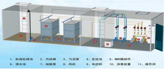 公司膜法水处理设备产品由膜组件、反应池、污泥泵、抽吸泵、风机、电控柜、前端处理池、清水池、操作间等部分组成,结合了高效膜分离技术和活性污泥法技术。