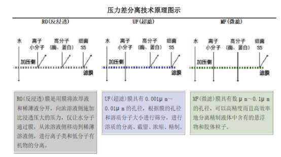 当溶液与膜接触时,在压力等驱动下,某些物质可以透过膜,而另外一些物质则被拦截,使溶液与溶质被有效分离。