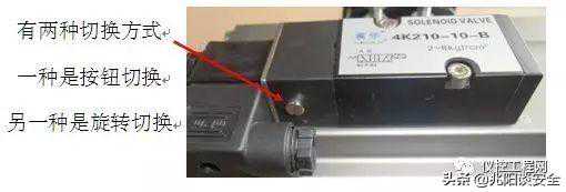 2.在装上电磁阀以后,首先通气看阀门是否为全关状态,否则检查电磁阀及阀门安装状态。使用电磁阀上手动开关调试,看阀门的全开和全关位置是否到位,行程如需调整,方法与上面一样。