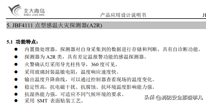 青鸟:JBF4111类型A2R型,因此安装应用环境温度为25℃,最高环境温度不超过50℃,报警温度为54℃~70℃,具有差温特性,快速升温可报警。