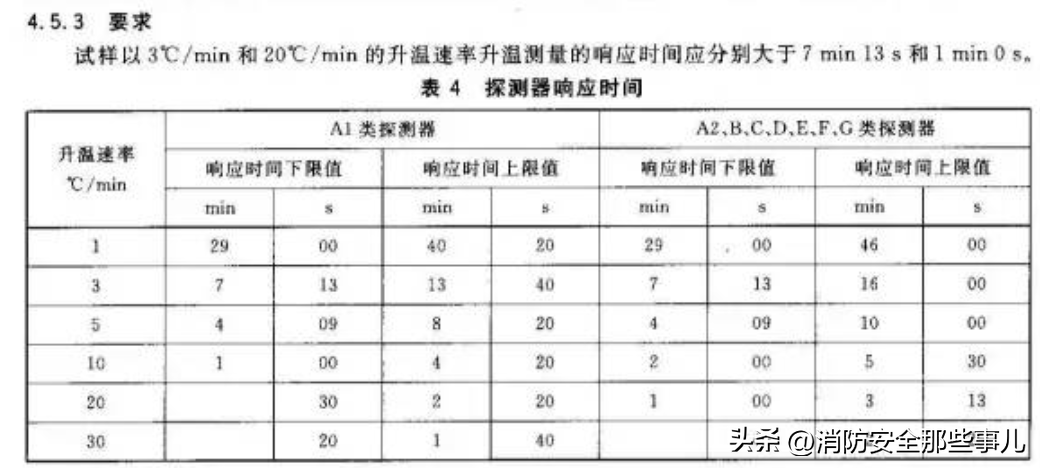 差温特性是指的温感探测的温度持续升温,在规定的范围内会触发报警,简单来说就是,快速的升温但是没到达报警温度可视为温度报警,实现差定温报警提高温度报警的可靠性,具体的规范如下: