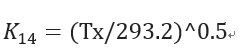 式中:K14=机组比功率吸气温度系数、Tx=空压机组实测进气温度,单位开尔文(K)