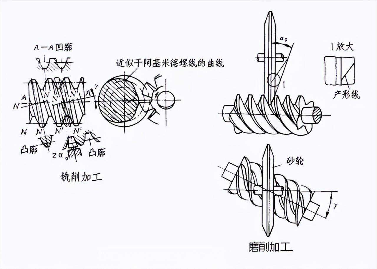 锥面包络圆柱蜗杆(ZK)——这是一种非线性螺旋曲面蜗杆。它不能在车床上加工,只能在铣床上铣制并在磨床上磨削。这种蜗杆便于磨削,蜗杆的精度较高,应用日渐广泛。