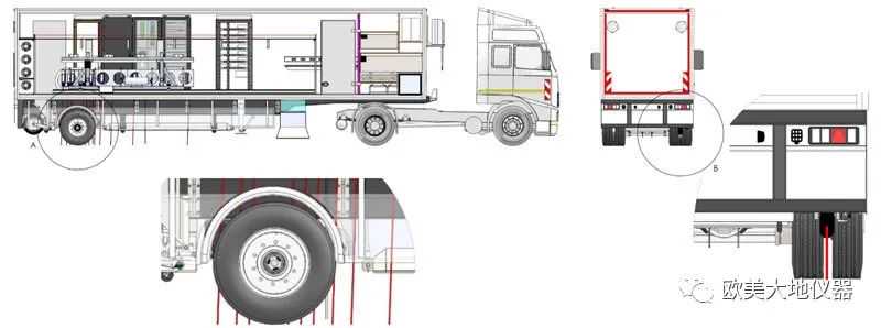 •为测量挂车承重后轴轴后和轴前位置路面响应,挂车和车轮轮毂经过了特殊设计制造时。