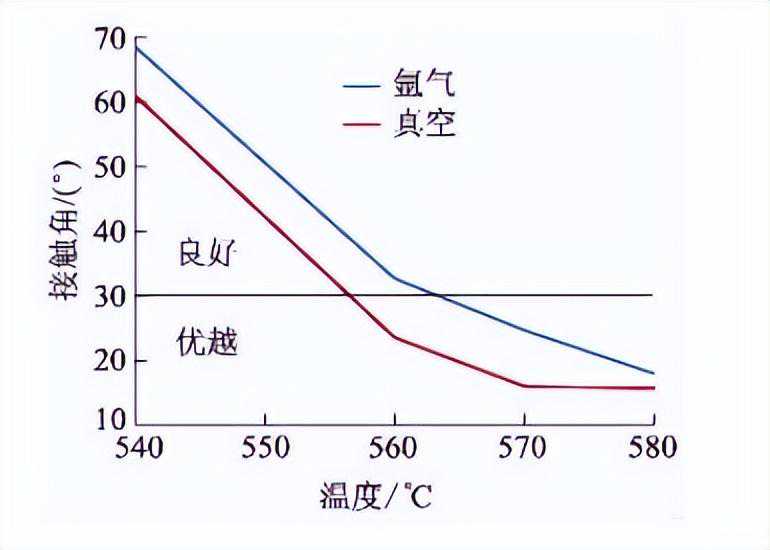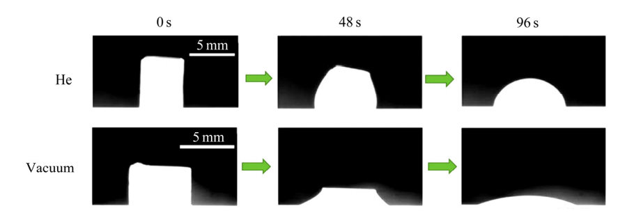 图1.21430℃时液态Si分别在101.3kPa氦气和真空中石墨表面的铺展