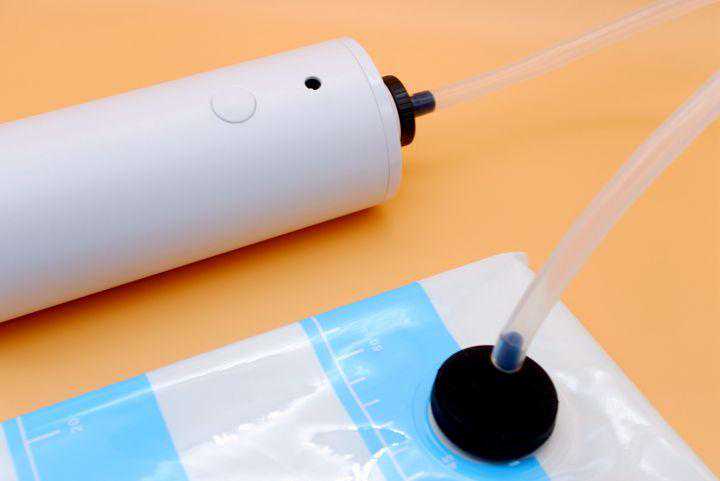 通过更换接头,我们还可以对多种型号的密封袋进行快速抽气收纳,而且在工作时几乎感觉不到抽气泵发热。