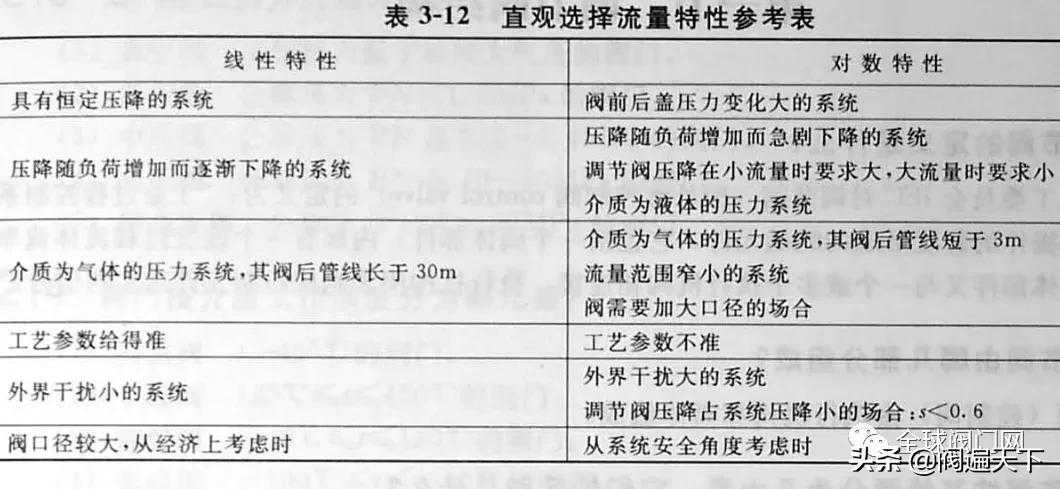 根据系统特征和工况条件,按表3-12直观地选择流量特征。
