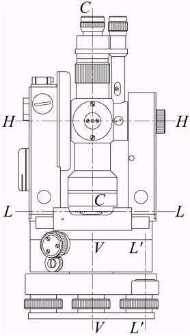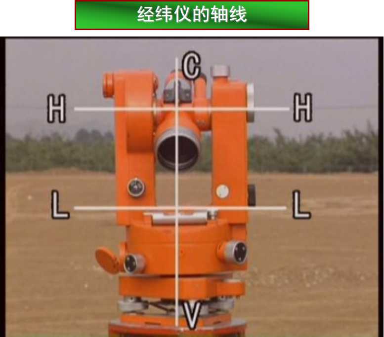 视准轴CC、横轴HH、管水准器轴LL、竖轴VV。