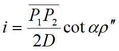检验:高墙上固定清晰照准标志P,距墙面20m~30m安置经纬仪盘左瞄准P点,固定照准部;望远镜视准轴水平墙面定出P1点纵转望远镜,盘右瞄准P点固定照准部,望远镜视准轴水平,墙面上定出P2点,横轴误差为: