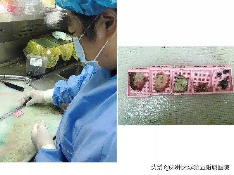 取材这一步骤,一般有两人共同完成,一名医生取材,一名医生详细记录取材过程,并对标本摄影存档。