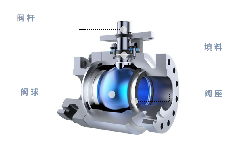 球阀在管路中主要用来切断、分配和改变介质的流动方向。