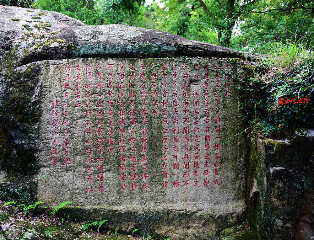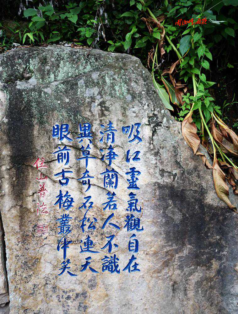我看见鼓山历代石刻均描红,新出现的蓝色石刻都是普法所书。