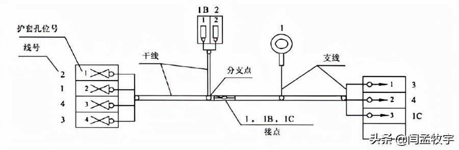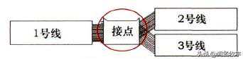 如下图所示,此线束由1号线、2号线、3号线组成,3根线在线束内部是相互连通的,3根线在线束内部的连接点就是接点。
