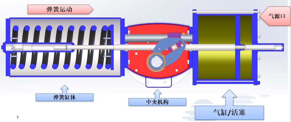 OMAL双动型重型气动执行器这种执行机构,拨叉是位于中央机构控制活塞运动,但与气缸活塞是分开的,这就解决了很多的密封问题,并且允许使用各种气体或是液体控制,而不是只有空气作为气源.例如:水,气体甲烷等。