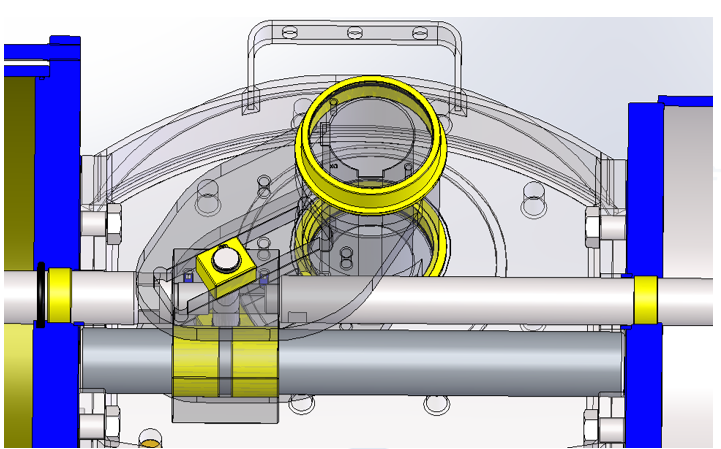 3.导杆(浅蓝色)材质为钢(42CrMo4)能够承受高的侧向力,确保足够对活塞杆的承受力。此外,导杆表面镀铬,以确保最大程度的防腐蚀性,减少与滑块相互运动的摩擦阻力。