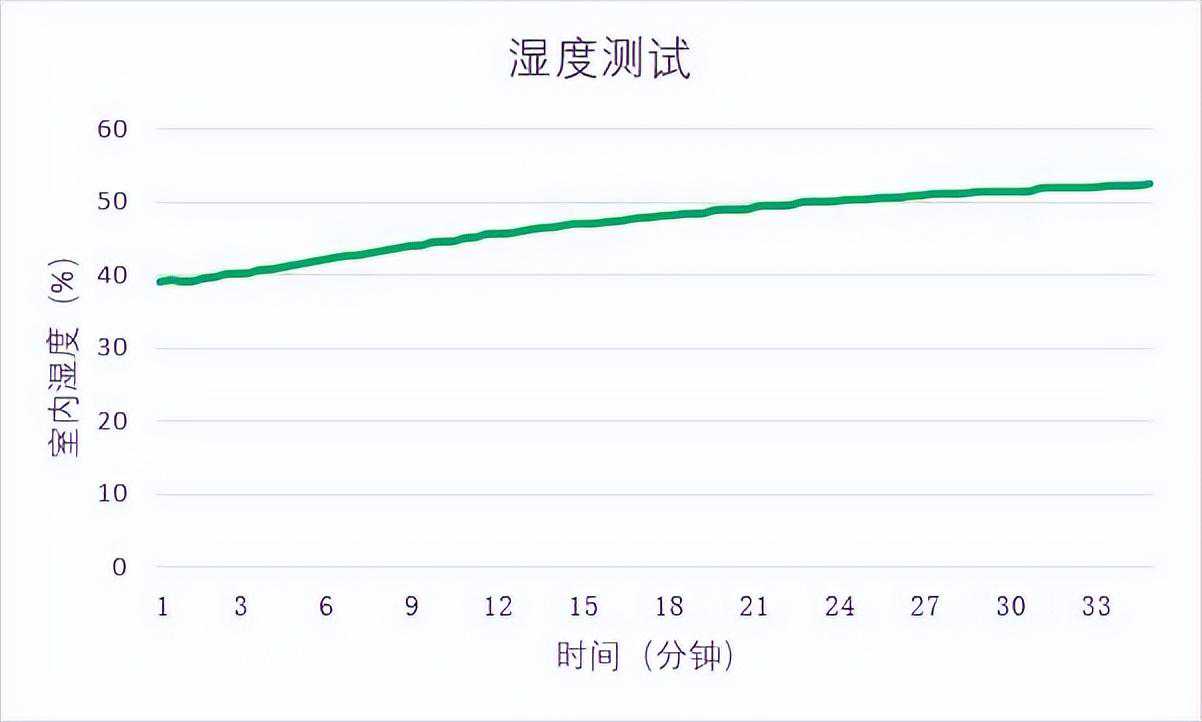 能够通过“湿润冷风”为房间降温的同时附加增湿,是这款格力新型冷风循环扇的主打卖点之一,那么该机的实际测试情况又是如何呢。本项测试我们在大小约18㎡的封闭房间中进行。