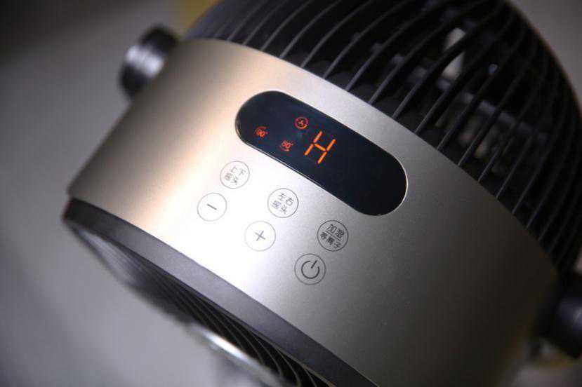 该机的扇头部分有些形似探照灯,螺旋状前、后网罩的格栅排布有序且密集,在兼顾安全性的同时还可让出风范围加大。使用时,扇头可以80°水平自动摇头、90°仰角自动调节,上下左右转动均顺滑无异响,大角度3D立体环绕式的出风,使得送风范围更广、覆盖更均匀,可轻松做到“面面皆清凉”。