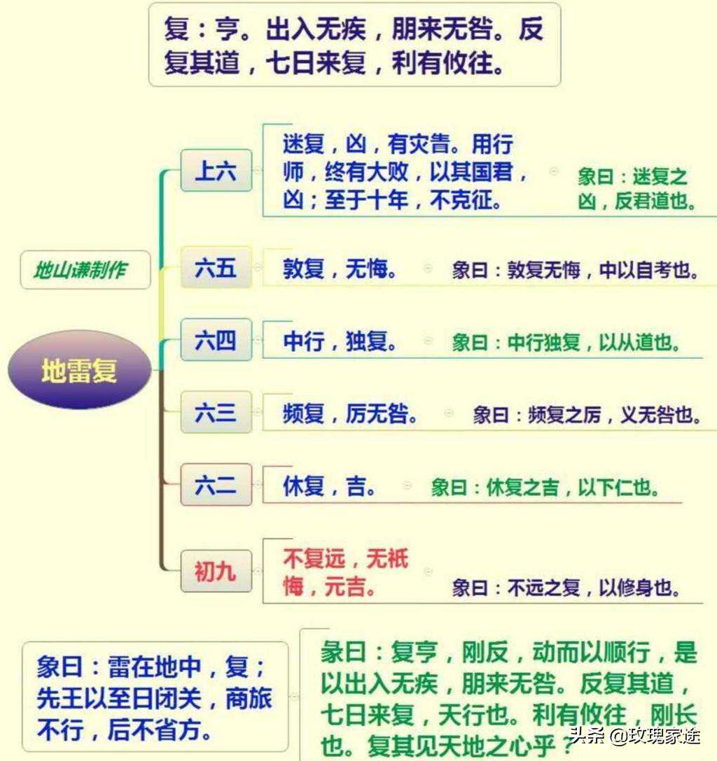 反复其道,七日来复,利有攸往:形精互化的规律,神气交正七次入神,元神复苏一次。在反复中汲取滋养,有助于神的修炼和止定。