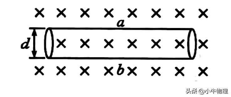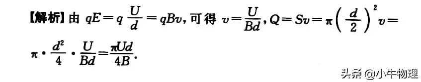 例题:图是电磁流量计的示意图.在非磁性材料做成的圆管道外加一匀强磁场区域,当管中的导电液体流过此磁场区域时,测出管壁上的ab两点间的电动势E,就可以知道管中液体的流量Q[单位时间内流过液体的体积(m³/s)].已知管的直径为D,磁感应强度为B,试推出Q与E的关系表达式