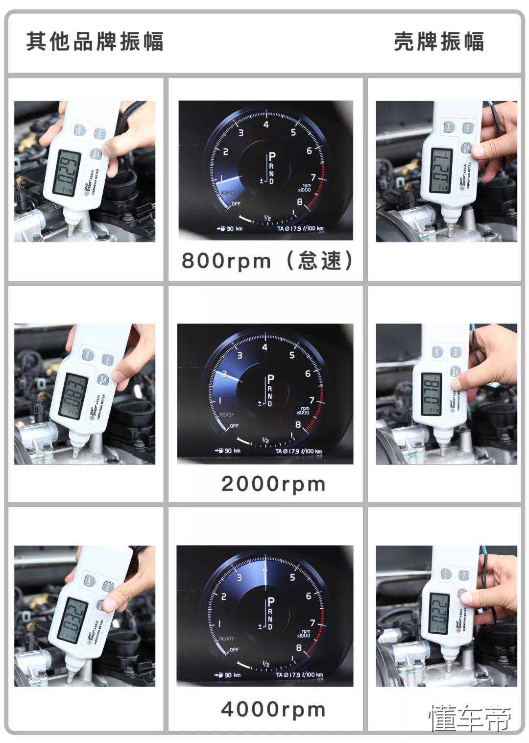 1.振动测试:用振动测试仪分别测试车辆在加注两款润滑油后,不同转速时的振动情况。润滑油的综合性能越好,发动机的振动幅度会越小。