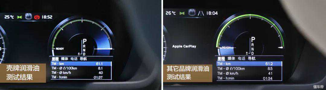 给沃尔沃XC90分别换上两种润滑油,进行下列相关性能的测试(第一天采用的是其他品牌润滑油,第二天换为壳牌极净超凡喜力)。